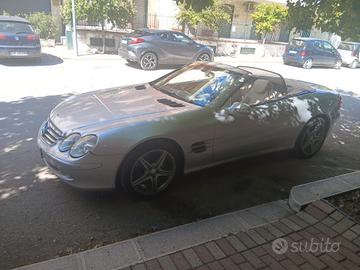 Vendo Mercedes-Benz SL 350, 2003, Argento metallizzato con interni in pelle Beige, Cambio automatico, manuali uso e manutenzione e libretto tagliandi, triple chiavi, km 164000, buone condizioni generali, motore e meccanica ottimi, cappottina perfetta e senza perdite di olio o difficoltà nel movimento, doppio treno di cerchi e gomme disponibili.