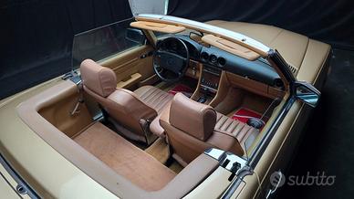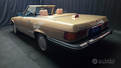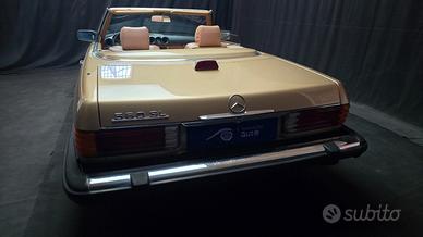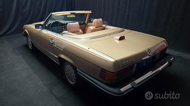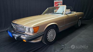 L'auto che presentiamo, rappresenta una roadster di lusso prodotta dalla Mercedes-Benz per affermare l’inconfutabile supremazia tecnica. Sicuramente elegante e sportiva, la 560 SL color ORO originale “GOLD Mercedes” affascina per le sue linee intramontabili, le proporzioni classiche da roadster e il suo design iconico, negli interni come negli esterni. Raffinatezza allo stato puro rappresentata dall’inimitabile Mercedes 560 SL, design iconico e proporzioni classiche che attirano l’attenzione di tutti. Gli interni offrono un ambiente confortevole unito all’esclusiva atmosfera che si crea viaggiando a cielo aperto, un’atmosfera che solo una Gran turismo come la R107 è in grado di trasmettere, indossa un motore erogare fino a 260 CV a 4750 giri/min, guidarla è un vero piacere, fluida e reattiva, una combo perfetta.La vettura che proponiamo è un oggetto che presenta tutto quello che un appassionato di auto storiche ed ancor più Mercedes Benz ricerca in una vettura. Auto “Matching Numbers” dove si intende la totale corrispondenza tra numero telai-numero motore-numero cambio- e numero colore dell’auto alla nascita dalla fabbrica, tutto questo documentabile.La sua linea evoca eleganza e spensieratezza, è talmente bella che ovunque si vada con lei, si viene accompagnati da sorrisi e sguardi di ammirazione. Questa Mercedes Benz è stata pensata espressamente per godersi la guida a cielo aperto, la stessa è completa di certificazione ASI e di certificato delle caratteristiche tecniche del veicolo, quindi tassa annuale di circa 27,00 euro ed assicurazione RCA completa a circa 80-100 euro annuali. La vettura , omologata 4 posti, del 1986 molto bella, uniproprietario, usufruisce di tutte le agevolazioni fiscali e assicurative vigenti essendo ultra trentennale, corredata di interni in pelle color “BEIGE-CAMMELLO Mercedes” , full optional, autoradio con antenna elettrica, clima automatico, ABS, Air Bag, cruise control, hard top originale in tinta, nuovo soft top, doppie chiavi, c