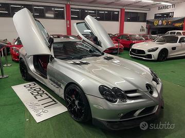 MERCEDES-BENZ SLR MCLAREN 5.4 625 CV Anno 2004 Km 19000 certificati Tagliando completo appena fatto AeroKit 722 carbonio totale interno ed esterno INTROVABILE composto da: Spoiler anteriore,Estrattore posteriore,Pinne parafanghi,Pinne cofano anteriore,Console centrale,Contachilometri,Specchi laterali,Specchio interno,Sedili,Battitacco,Pannelli porte,Modanature interne,Alettoncino posteriore,Freno a mano Apertura porte ali di gabbiano Cambio automatico e sequenziale F1 Cerchi in lega da 20 Fari Xeno anteriori Fari Led posteriori Impianto Bose Interni in pelle rossa e nera Scarico sportivo completo Sedili sportivi elettrici Alzacristalli elettrici Chiusura centralizzata Climatizzatore Servosterzo Cruise control Uso e manutenzione Mercedes-Benz McLaren Triple chiavi Condizioni impeccabili Auto “UNICA” ed “INTROVABILE” per allestimento e condizioni Da collezione e di sicura rivalutazione Possibilità di finanziamento a tasso agevolato Si valutano permute Per ulteriori informazioni e valutazione permute: anche WhatsApp anche WhatsApp