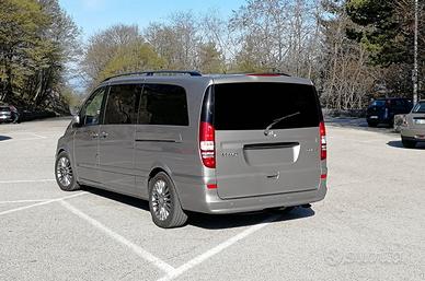 Privato vende Mercedes-Benz Viano (W639) 2.2 CDI - 120kW Euro 5 - allestimento Trend nella versione Extra Long (5,23 mt), immatricolato 05/2012, 8 posti. Veicolo ufficiale italiano, unico proprietario, Km 222.000 in uso quotidiano. Motorizzazione diesel OM651 da 2.2 litri, 163cv, Euro 5, dotato di filtro antiparticolato, cambio manuale 6 marce e sistema Start/Stop automatico. Capacità di traino fino a 2.500 kg con gancio a sfera removibile (mai effettuato traini) Doppia zona climatica con Tempmatic semi-automatico sia nel vano anteriore che posteriore, riscaldatore ausiliario ad acqua calda, vetri oscurati nel vano posteriore. Panchette da 3 posti su entrambe le file posteriori con funzione EASY-ENTRI (sedili esterni ribaltabili). Sistema Audio 20 con presa AUX, volante multifunzione in pelle con computer di bordo, cruise control, sensore luci e pioggia con accensione automatica. ESP, airbag frontale passeggero, airbag laterali e tendine airbag per guidatore e passeggero, assistenza alla partenza in salita, Parktronic con sensori di parcheggio, impianto allarme antifurto. Colore carrozzeria in Argento Cubanite Metallizzato, cerchi in lega da 17 pollici, barre longitudinali sul tetto, specchietti esterni elettrici, riscaldati e ripiegabili automaticamente e specchietto interno antiabbagliamento automatico. Meccanica in ottime condizioni, tagliandi ogni 15.000 Km, recentemente spesi oltre 3.000 € di manutenzione (freni, ammortizzatori, bracci sospensione e supporti motore), con fattura. Disponibile per visione e prova su appuntamento.