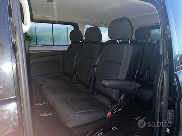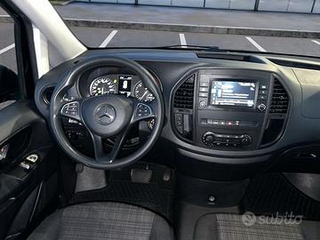 Adaptive ESP - Airbag passeggero - Alternatore 14V/200 A - Altoparlanti anteriori e posteriori a due vie - Alzacristalli elettrici anteriori Comfort - Anelli di ancoraggio - Apertura e chiusura Comfort con telecomando a infrarossi - Attention Assist - Audio 10 - Avvertimento cintura di sicurezza per il sedile del conducente - Batteria AGM da 12V/95 Ah - Batteria tampone per l'avviamento - Braccioli per i sedili nel vano passeggeri - COC - Cambio automatico a 9 rapporti 9G-Tronic - Categoria di emissioni Euro 6d-TEMP GR.II - Cerchi in acciaio 6,5J x 17" - Chiusura centralizzata con telecomando - Chiusura di sicurezza per bambini nel vano passeggeri - Climatizzatore TEMPMATIC a regolazione semiautomatica - Condotto aria calda nel vano passeggeri - Controllo della pressione degli pneumatici - Copricerchi - Cric - Cristalli atermici - Crosswind Assist - Cruise control - Fari alogeni - Fermo attivo per porta scorrevole - Filtro carburante con separatore per acqua - Finestrini posteriori dx e sx fisso (ultima fila del vano di carico) - Finestrino anteriore destro fisso nella porta scorrevole - Finestrino anteriore sinistro fisso nella fiancata/porta scorrevole - Finestrino nel portellone/porta post. a doppio battente con tergilavalunotto - Fissaggio dei sedili per 2 file nel vano passeggeri con bloccaggio rapido - Funzione ECO Start/Stop - Gestione guasti - Gestione ottimizzata dell'alternatore - Gruppo comandi sul tetto Comfort - Immobilizzatore - Indicatore di manutenzione per filtro dell'aria a secco - Indicatore temperatura esterna - Libretto in italiano - Luci di stop adattive - Luci interne nel vano posteriore - Maniglia di sostegno laterali fissate alle porte - Maniglia di sostegno per la zona di ingresso e uscita dell'abitacolo - Maniglie di sostegno nel vano posteriore - Mercedes-Benz Emergency Call - Modulo di comunicazione Hermes - Pacchetto BlueEFFICIENCY - Pacchetto Chrome per gli