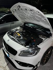 Vendo mercedes classe A 250, con tagliando fatto a 88000km sia motore che cambio ( per la seconda volta ) La macchina monta i seguenti pezzi; - turbina mggiorata da evolution turbo - aspirazione diretta K&N - Tubazione artigianale aspirazione in acciaio inox con bendaggio Oro DEI; - Intercooler Wagner con tubazioni in alluminio; - Copertura lato caldo turbo Funk Motor Sport; - Downpipe skat da 76mm bendato (fino al flessibile) con centrale maggiorato da 70mm Ragazzon e finale Remus con uscite da 127 mm; - Affinamento mappa motore eseguita da 0 su banco; ( 281CV - 432NM) - Mappa cambio; - Impianto frenante di derivazione AMG con tubazioni in treccia Hel Performance e olio Motul RBF 700; - -Dischi freno anteriori Mtec flottanti scomponibili e posteriori Brembo con pastiglie anteriori EBC Bluestuff NDX e posteriori EBC Yellowstuff; - Bulloni asolati per camber anteriore dedicati; - Assetto Bilstein b12 Pro kit; - Barre antirollio maggiorate H&R; - Biellette anteriori DNA Racing; - Rinforzi telaio sottoscocca; - Barra duomi anteriore; - Diffusore posteriore stile Brabus; - Alettone A45 AMG in carbonio; - Paraurti A45 AMG Restyling; - Griglia anteriore Americana nera lucida; - Specchietti Carbon Look con frecce dinamiche. Dispongo anche di un altro set di cerchi ( neri ) sempre da 18 Impianto frenante originale Terminale originale Dispongo anche di altri pezzi Prezzo trattabile
