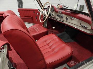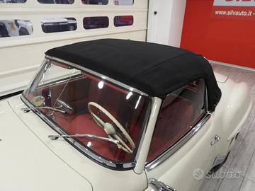 Sedili e pannelli in tutta pelle cartier, Moquette in lana rossa al pavimento, Specchio esterno lato guida cromato, Autoradio Blaupunkt con antenna manuale al parafango anteriore sinistro, Cerchi in ferro con calotte in tinta carrozzeria con anello cromato con pneumatici Michelin 6.40 R13, Capotte in tela nera, Hard top in tinta carrozzeria