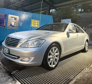 Vendo Mercedes Classe S 500 W221 4MATIC, motore V8 benzina, colore grigio con interni in pelle nera e tetto panoramico apribile.