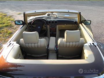 Vendesi Mercedes 280SL del 1980, certificata targa oro, perfetta, conservata, 147.000 km, marrone metallizzato, interni 2+2 in pelle beige, cambio automatico 4 rapporti, sedili riscaldati, cappotta nuova + hard-top rigido perfetto.
