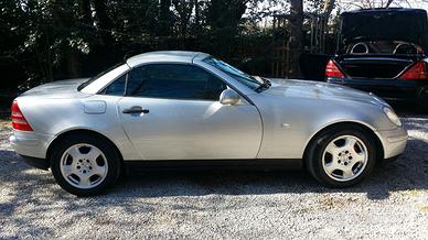 Vendo Mercedes SLK 200 Kompressor , benzina, colore grigio argento interni tessuto Blu KM.165.000 cerchi in lega anno 1997 con certificato ASI