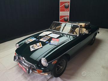 MG B Roadster 1.8 cc, anno 1974 certificata ASI con CRS. Bellissimo conservato caratterizzata da una scocca portante che invece del vecchio telaio, ora ha parti della carrozzeria in alluminio per contenere i pesi e freni a disco anteriori. Quando venne creata la MG B, non ci si aspettava che il suo ciclo di vita sarebbe durato ben 18 anni e che sarebbero state realizzate mezzo milione di vetture. L'auto fu ben accolta dalla stampa che evidenziò le sue prestazioni e peculiarità, piacere di guida ed economia di gestione ne fecero subito una beniamina del pubblico, una Roadster firmata British Leyland che sicuramente non lasciava passare inosservati. Dal punto di vista meccanico, il nuovo modello era un'evoluzione della MGA con lo stesso cambio a 4 marce, le sospensioni anteriori indipendenti e gli assali posteriori mobili, ma la serie B aveva un motore da 1,8 litri, inoltre la potenza di 94 cv consentiva una velocità di 170 km/h circa. I cambiamenti per il nuovo modello miravano soprattutto al miglioramento del comfort: deflettori, posizione di guida più comoda, più spazio per passeggeri e bagagli.