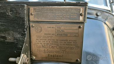 City Motors - Automobili d'Epoca e da Collezione dal 1987 - Pianezza (TO) - Italia Visita il nostro sito per ulteriori informazioni: www.citymotors.to.it MG TD Midget – 1953 Italiano: Vettura in ottime condizioni generali, interni originali ottimamente conservati, motore originale 1.250 cc, ottima meccanica, completa di capote e laterali, omologata ASI con targa ORO, iscritta ASI e al Registro MG Car Club Italia, provenienza California, targhe italiane e documenti in regola English: Car in excellent overall condition, with well-preserved original interior, original 1,250 cc engine, excellent mechanics, complete with hood and side covers, ASI approved with GOLD plate, registered with ASI and the MG Car Club Italia Registry, originating in California, Italian documents ready for export Deutsch: Das Fahrzeug befindet sich in einem hervorragenden Gesamtzustand, mit gut erhaltener Originalausstattung, originalem 1250-cm³-Motor, einwandfreier Mechanik, komplett mit Motorhaube und Seitendeckeln, ASI-geprüft mit Goldplakette, registriert bei ASI und dem MG Car Club Italia Register, ursprünglich aus Kalifornien, italienische Exportpapiere vorhanden. Français: Voiture en excellent état général, intérieur d'origine bien conservé, moteur 1 250 cm³ d'origine, mécanique en parfait état, capote et caches latéraux inclus, homologuée ASI avec plaque d'or, immatriculée auprès de l'ASI et du registre du MG Car Club Italia, originaire de Californie, documents italiens prêts pour l'exportation Español: Coche en excelente estado general, con interior original bien conservado, motor original de 1.250 cc, mecánica excelente, completo con capó y tapas laterales, homologado por la ASI con placa GOLD, registrado en la ASI y en el Registro del MG Car Club Italia, originario de California, documentación italiana lista para la exportación. Per qualsiasi informazione Vi preghiamo di contattarci via mail o telefonicamente al oppure For any informatio