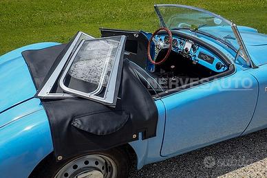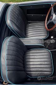 Carrozzeria color Iris Blue, selleria nuova in pelle nera con piping azzurro, capote in Canvas nera nuova, provvista di tonneau cover, finestrini laterali in alluminio e volante Motolita.