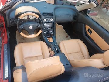 Perfetta e pronta all'uso, tagliandata e revisionata. pratiche asi già avviate, motore già revisionato, nessun problema da segnalare oltre alla normale usura dei suoi 27 anni di età. Capote perfetta, Interni in pelle integrale beige Gucci, ABS, hard top nero+carrello porta capote per rimessaggio estivo, portapacchi cromato, frangivento, radio CD, antifurto anti-intrusione a capote aperta, documentazione completa, doppie chiavi. i km sono reali e tagliandati, sono stati fatti tutti i lavori di guarnizione testata, cinghia, supporti cuscinetti, fasatura, equilibratura gas sospensioni ecc... l'auto è da uso quotidiano e i consumi sono più che accettabili considerata la sportività del motore.