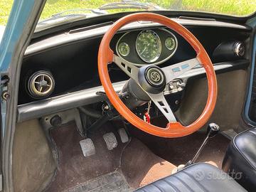 Interni e carrozzeria in buone condizioni generali, mantiene il fascino autentico della Mini classica senza interventi invasivi di restauro.
