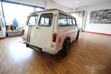 Vi presentiamo una bellissima e rarissima Mini Clubman 1100. Tante le particolarità di questo modello a comminciare dal suo colore esterno bianco ghiaccio. Completamente restaurata di meccanica presso le officine RM garage. Pricipalmente parliamo del cambio, frizione, motore e revisione di tutta la ciclistica ( sospensioni scatola guida gommini supporti...). Monta uno scarico sportivo e un motore 1280 cm3 revisionato e riverniciato nel colore rosso Cooper con prestazioni superiore a quelle di un cooper. Internamente è in buone condizioni con i suoi sedili e panelli porta originali, moquette rossa e volante a calice. Internamente troviamo in piu un bellissimo cruscotto rivestito da Sky a 6 strumenti come un cooper, fondini bianchi degli strumenti La carozzeria si presenta in buono stato con qualche piccolo lavoro da eseguire visto l'età della macchina. Dotata di faretti suplementari, codolini in plastica e paraurti cromati in ottimo stato. Una piccola scheggia pur avendo un furgoncino per uso pubblicitario, lavorativo e per ogni eventuale carico. Molto pratico anche per raduni con a disposizione un bagagliaio capiente per caricare valigie e qualsiasi strumentazione. Dispone delle targhe originali nere con provincia TO.