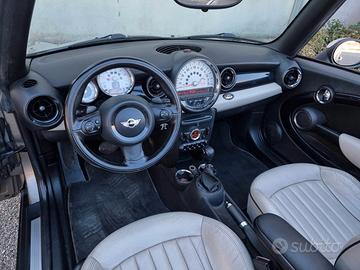 Mini Cooper D Cabrio 2.0 112 cv/82 Kw Anno 2011,km 160.000 regolarmente tagliandati,colore grigio perla metallizzato con interno in pelle totale color avorio,cambio automatico,climatizzatore elettronico/automatico bizona,computer di bordo,impianto stereo con cd ed interfaccia Smartphone,Bluetooth,telefono vivavoce,volante sportivo multifunzione,cruise control,specchi retrovisori regolabili elettricamente,antifurto perimetrale,sensori di parcheggio,cerchi in lega 17”,regolarmente tagliandata con catena di distribuzione sostituita a 156.000 km e con sostituzione del cambio automatico.