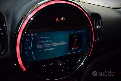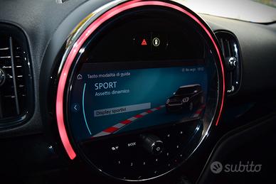 Allestimento "Northwood Edition" dotato dei seguenti optional:vernice metallizzata Island Blue,tetto/specchietti bianco,climatizzatore automatico bizona,sedili in stoffa Firework Carbon Black,sedili anteriori riscaldabili,superfici interne in Hazy Grey,volante sportivo in pelle con comandi multifunzione regolabile in altezza e profondità,bracciolo centrale anteriore,sedili posteriori scorrevoli con funzione "Cargo",pacchetto portaoggetti,quadro strumenti digitale,retrovisore interno autoanabbagliante,MINI Connected Navigation,Mini Connected XL,MINI Connected Media con Smartphone Integration (incluso Apple CarPlay),Radio MINI Visual Boost da 8,8",radio DAB,interfaccia Bluetooth con Wireless Charging,sensore luci/pioggia,Keyless GO,Driving Assistant con Lane Departure Warning,Comfort Access,retrovisori esterni richiudibili elettricamente,pacchetto retrovisori esterni con logo Projection,pacchetto visibilità,Active Cruise Control,cambio automatico Steptronic a 8 rapporti,,Kit estetico ALL4,Color Line Carbon Black,fari a Led,sensori di parcheggio posteriori (PDC),portellone automatico posteriore,barre porta tutto nere,cerchi in lega da 17" Channel Spoke neri,fari fendinebbia a Led.