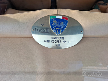 Vendesi Innocenti Mini cooper targa oro anno 1970 in ottime condizioni, di seguito gli ultimi interventi effettuati: Filtro olio + olio motore, Servo freno, Tubazioni in gomma motore, Gommini tiranti ant. sosp., pompa freni, pompa frizione, Attuatore frizione, Kit gommini pinze freno, Giunto albero, semiasse ruota destra, Cinghia, Radiatore, Cuffia int. Semiasse, cuffia esterna Semiasse, paraolio leva cambio, silent block leva cambio, Sostituzione teleavviatore ascensione
