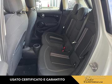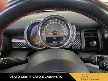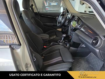 Climatizzatore manuale con sistema di raffreddamento del cassetto portaoggetti e microfiltro (530), 2 portabicchieri nella consolle centrale e 1 posteriore, Luci di cortesia anteriori e nel vano bagagli, Sedile guidatore regolabile in altezza e con funzione "Memory", Sedili sportivi, Sedili sportivi con seduta regolabile in profondità e tasche dietro agli schienali, Volante sportivo in pelle a 3 razze, Volante sportivo in pelle a 3 razze regolabile in altezza e profondità (255), 5 sedili, Divano posteriore abbattibile sdoppiato, Assale anteriore a snodo singolo e montanti molleggiati (McPherson), Assale posteriore a bracci multipli (Multi-Link), Bullone Antifurto (2PA), Condition Based Service (indicatore di prossimità dell'intervento di manutenzione), Maniglia del portellone posteriore in nero lucido, MINI LED Ring intorno al display centrale, MINI Mobility System, Tachimetro e contagiri dietro al volante con indicatore di temperatura esterna, velocità, ora e data, Filtro antiparticolato (solo su motorizzazioni Diesel), Keyless GO (avviamento vettura senza chiave), Doppia chiave con comandi a distanza con funzione di memoria delle impostazioni del veicolo, Kit di pronto soccorso, 2 alette parasole anteriori con specchietto di cortesia, Immobilizzatore elettronico, Chiusura centralizzata con telecomando nella chiave e funzione di chiusura automatica dopo i 16km/h, Radio MINI con display a 4 righe, interfaccia iPod, interfaccia USB e ingresso Aux., Cambio manuale a 6 marce, Cerchi in lega da 16" Loop Spoke - Argento, Cerchi in lega da 16" Loop Spoke color Argento (2F3) - Pneumatici 195/55 R16, Brake Energy Regeneration, Start/Stop automatico, Colour Line Carbon Black, Colour Line Carbon Black (4C1), Tetto in tinta carrozzeria, Tetto in tinta carrozzeria, Side Scuttles cromati con indicatori di direzione integrati, Retrovisori esterni con specchi asferici e regolabili elettricamente, Retrovisori esterni e getti lavavetro riscaldabili,