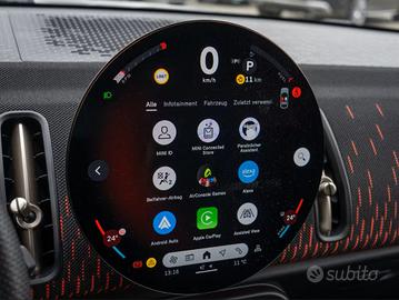Sedili anteriori sportivi, Volante sportivo in pelle Nappa con badge JCW, Bracciolo centrale anteriore, 5 posti, Tappetini in velluto, Sedili posteriori scorrevoli con funzione «Cargo», Pacchetto fumatori, Clima Automatico Bizona, Assale anteriore a snodo singolo e montanti molleggiati (McPherson), Assale posteriore a bracci multipli (Multi-Link), Bullone antifurto, eDrive Services, Indicatori di direzione bianchi, Kit areodinamico John Cooper Works con paraurti dedicati, MINI Connected, MINI LED Ring e MINI Controller, Remote Services e integrazione con MINI App, Retronebbia, Side Scuttles John Cooper Works, TeleServices, Tessera MINI Charging, Keyless GO (avviamento vettura senza chiave), Trazione integrale ALL4, Doppia chiave con comandi a distanza con funzione memoria, Cornice griglia COOPER S con grigia a nido d'ape in nero opaco, Eliminazione scritta modello, Maniglie esterne e interne cromate, Paraurti posteriore specifico Cooper SE, Piano Black Exterior, Tetto e specchietti a contrasto, Quadro strumenti digitale, Terminale di scarico singolo cromato, 2 alette parasole anteriori con specchietto di cortesia, Immobilizzatore elettronico, Chiusura centralizzata con telecomando, Sospensioni sportive, Radio MINI Visual Boost da 8,8", Comandi multifunzione al volante, Real Time Traffic Information, Radio DAB, Cambio Automatico sportivo, Cerchi in lega da 19'' Circuit Spoke, Smartphone Integration Incl. Apple Car Play, Cavo di ricarica domestica, Cavo di ricarica pubblica, Griglia frontale John Cooper Works con red line, Kit aerodinamico JCW, Specchietti retrovisori ripiegabili elettricamente, Retrovisori esterni e getti lavavetro riscaldabili, Spoiler posteriore, Badge ALL4, Barre al tetto e listelli laterali color alluminio, Fari a LED, Fari fendinebbia a LED, Sensore luci/pioggia, Sedili Racing JCW in tessuto Dinamica/pelle Carbon Black, Padiglione color antracite, Pacchetto Luci LED, Pacchetto portaoggetti, ABS, CBC, EBD,