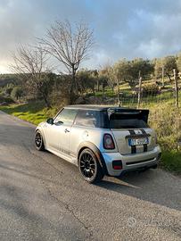 Mini R56 John Cooper Works 211 cv anno immatricolazione 2009. La scocca ha appena raggiunto i 100 mila km, il motore e tutte le parti speciali (pistoni bielle turbina intercooler scarico step2 ecc) ne hanno poco più di 5000. Motore flangiato con pistoni stampati, bielle ad H, bulloneria rinforzata, macchina curata da amatore, con base per grande elaborazione e non completata. In più specchietti, pomello cambio e freno a mano, presa aria ant e post in carbonio originali jcw