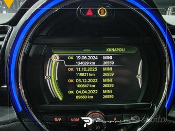 Luci di cortesia anteriori e posteriori integrate e nel vano bagagli., Luci di lettura lato guidatore e passeggero, Regolazione altezza sedile passeggero (450), Sedile guidatore regolabile in altezza e con funzione "Memory", Sedili posteri con schienale ribaltabile frazionato (40:20:40) NEW, Volante sportivo in pelle regolabile in altezza profondità (255), Bracciolo anteriore (473), 5 sedili, Pacchetto fumatori (441), Climatizzatore Automatico Bizona, Active Guard (5AV), Assale anteriore a snodo singolo e montanti molleggiati (McPherson), Assale posteriore a bracci multipli (Multi-Link), Bullone Antifurto (2PA), Condition Based Service, Indicatori di direzione bianchi (785), MINI Connected, MINI Mobility Kit, MINI Mobility System, Safety bar anteriore nero luciso, Safety bar anteriore nero opaco, Sedili standard, Filtro antiparticolato (solo su motorizzazioni Diesel), Keyless GO (avviamento vettura senza chiave), Doppia chiave con comandi a distanza con funzione memoria, Kit di pronto soccorso, Cornice griglia anteriore cromata e listelli in nero lucido, Bracciolo anteriore,