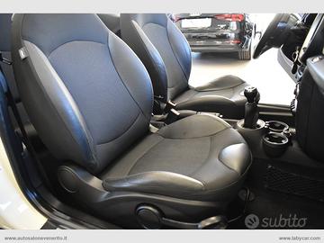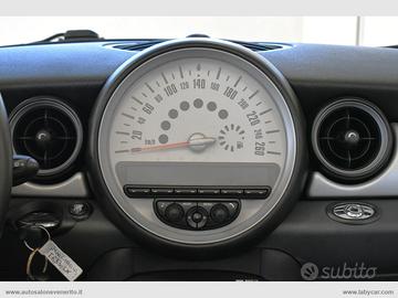 Abs, Airbag, Airbag passeggero e laterali, Chiusura centralizzata, Immobilizzatore elettronico, Chiave con trasponder, 4 Alzacristalli elettrici, Regolazione specchietti retrovisori elettrica, Computer di bordo, Sistema antislittamento ASC, Volante regolabile in altezza e profondità, Climatizzatore, Autoradio, Lettore cd mp3, Interfaccia AUX, Interni in pelle parziale, Sedili anteriori regolabili in altezza, Sedili posteriori sdoppiati, Inserti plancia grigio opaco, Battitacco con logo MINI, Maniglie interne ed esterne cromate, Cappotta elettrica automatica con lunotto termico in vetro, Griglia anteriore con finiture cromate, Prese d'aria sui parafanghi, Terminale di scarico cromato, Indicatore pressione pneumatici, Sensori di parcheggio posteriori, Fari fendinebbia, Specchietti retrovisori cromati, Cerchi in lega 16.