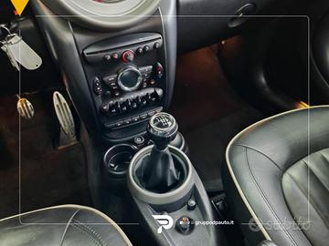 Climatizzatore manuale (con sist. raffreddam. cassetto portaoggetti), 2 portabicchieri nella console centrale, Luci di cortesia anteriori, Sedile guida regolabile in altezza, Sedili sportivi, Volante sportivo a 3 razze in pelle, Configurazione a 5 posti, Maniglie interne di apertura porta cromate, Tappetini in velluto, Divano posteriore scorrevole ed abbattibile 40:20:40, Pacchetto fumatori (posacenere ed accendisigari), Bullone antifurto per cerchi, Center Rail (rotaia centrale) in alluminio anodizzato, Condition Based Service, Luci nel vano bagagli, MINI Mobility System, Poggiapiede guidatore e pedali in alluminio, Terza luce di stop, Filtro Antiparticolato, Seconda chiave con comandi a distanza, Kit pronto soccorso, 2 alette parasole anteriori con specchietto di cortesia, Immobilizzatore elettronico, Chiusura centralizzata automatica a 16 km/h, Chiusura centralizzata con radiotelecomando nella chiave, Radio MINI Boost con lettore CD Mp3, connessione AUX-In, 6 altop., display a 2 righe, Contagiri con indicatore temperatura esterna e ve