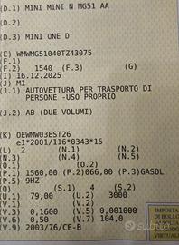 Vendesi Mini One D usata anno 2009. Cilindrata 1600 cc , Diesel . Km 210000, motore in buone condizioni. Qualche intervento di sistemazione generale.