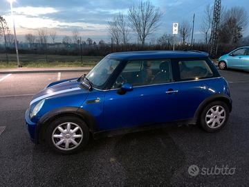 Vendo mini one de luxe 1.6 benzina, auto con attuali 180.000 km, color blu metallizzato, cerchi in lega da 16, alettone cooper. Adatta anche a neopatentati