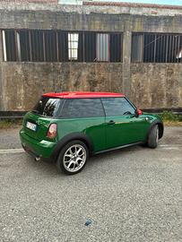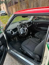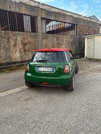 Mini ONE R56 del 2009 Motore 1.4 75cv, quindi ok per neopatentati Wrap completo verde con tetto rosso, colore originale beige Lavori eseguiti: distribuzione, tagliando, controllo generale, vetri scuri, loghi modello nuovo, griglia JCW, pinze rosse