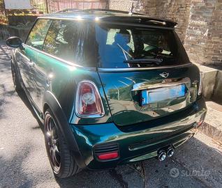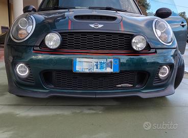 Mini R56 John Cooper Works originale a libretto. non è un Cooper s jcw... è una JCW originale con 211cv di puro divertimento. strafull...manca solo il navigatore ma una JCW originale deve avere il contakm centrale. molti particolari in carbonio tutti originali come mostrina volante, pomello cambio e freno a mano, terminali di scarico, presa aria cofano anteriore. Tettuccio apribile e panoramico con bandiera Union jack sul tetto, bande laterali John Cooper Works, minigonne e grembialatura completa originale di fabbrica. Fari black line e faretti di posizione e abbaglianti a led. doppi cerchi da 18 r105 con pneumatici estivi e da 17 r112 con gomme invernali. volante pelle-alcantara originale jcw e rifiniture in Alcantara e tanto altro...insomma da vedere per capire. Perfetta a parte qualche graffietto da sportelli di amici da parcheggio...dovete solo fare benzina e dare gas. Ah, ovviamente colore racing green e tetto nero. do insieme all' auto una marea di accessori come ad esempio un altro set di fari bixenon, fendinebbia, frecce laterali e un cambio. solo interessati e non perditempo o collezionisti di foto. non ne mando. chi è interessato la viene a vedere di persona. offro e pretendo massima serietà. mi ci diverto quotidianamente quindi i km sono in evoluzione...
