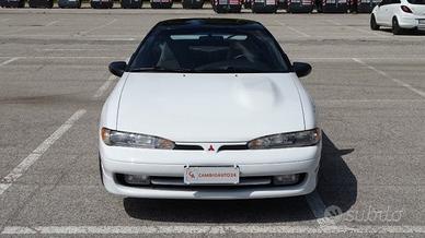 Ciao, sono Luca Olgiati, l’Esperto Cambioauto24 che ha visto e provato questa Bellissima Mitsubishi Eclipse, coupè 3 porte, con Cambio manuale, nella ricercatissima versione " GS Doct " con allestimento Americano, un 2.000 cc 16 valvole di cilindratada 136 Cavalli, Benzina, Euro 1, dell'anno 12/1992 con SOLTANTO 88.000 km circa originali. Auto di interesse storico già iscritta Asi dal 06/2023, in attesa per l'iscrizione targa Oro. La vettura è stata acquistata nuova in america e immatricolata per la prima volta in Italia a dicembre 1992 a km zero, un proprietario precedente oltre all'attuale che la vende per acquistare un Harley Davidson. Complessivamente in ottimo stato di mantenimento, molto ben mantenuta originale in tutte le sue parti, esternamente la carrozzeria è perfetta senza danni o strisci, la vernice è ancora lucida e brillante, i bellissimi interni in tessuto grigio scuro sono in perfeto stato di mantenimento senza macchie o tagli e ben puliti. Autovetturaè sempre stata tagliandatain officina specializzata, come da fatture dimostrabili, ultimo tagliando effettuato a maggio 2025, mentre la distribuzione completa è stata fatta ad aprile 2022. La strumentazione di bordo tutta regolarmente funzionante, climatizzatore, finistrini elettrici, tetto apribile, con spoiler aggiuntivo, cinture di sicurezza automatiche, terzo Stop, luci di ingombro, bracciolo, autoradio originale dell'epoca con equalizzatore e molto altro ancora. Cerchi da 16 pollici in