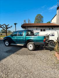 vendo pick up Mitsubishi l200 anno 1997, 2.5 TDI 100 CV, 270000 km originali, cambio 5 marce con ridotte 4x4 trazione integrale, carrozzeria in buono stato, con qualche segno del tempo ma nessuna botta o incidente, diversi lavori di meccanica eseguiti di recente cinghia distribuzione, frizione, ma motore con rumore metallico probabilmente punterie o bronzi e da rifare. interni integri in buono stato, cassone con vasca in alluminio mandorlato senza parafanghi interni in quanto è stato rialzato, gancio di traino omologato 2200kg il prezzo non è trattabile quindi contattare solo se interessati. immatricolato trasporto promiscuo persone e cose uso proprio simile a amarok navara Isuzu pickup ranger Dodge ram