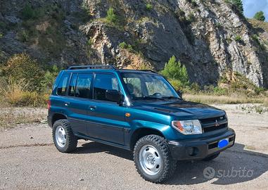 Cedo a malincuore per cambio progetto, bellissima mitsubishi pajero pinin 2.0 95kw GDI con impiantoGplLandiRenzo dedicato con bombola di 55 litri ubicata sotto al vano di carico, verde metallizzato inglese con aria condizionata, deflettori vetri anteriori, iscritta Asi (bollo e polizza ridotti del 50%). L'auto si presenta in modo impeccabile vista l'età. Monta di serie cambio SS4 della mitsubishi (il top nel mondo dei fuoristrada) che da la possibilità di avere 2 ruote motrici, 4 integrale, 4 integrale con bloccaggio e 4 ridotte con bloccaggio) il che la rende un' ottima auto stradale e grandissima in fuoristrada viste le dimensioni ridotte rispetto agli ingombranti nissan patrol, navara, mitsubishi l200, pajero, fiat panda 4x4, suzuki jimny vitara santana samurai sj410 y10, daihatsu terios, vero fuoristrada . L'auto internamente è perfetta, motore brillante con soli 129000km originali, carrozzeria conservata perfettamente con qualche graffietto irrisorio dettato dall'eta, no ruggine. Sono stati eseguiti moltissimi lavori per conservarla al meglio (bracci, biellette, ammortizzatori, kit distribuzione con pompa acqua e tendicinghia, radiatore nuovo, tagliando completo di tutti i filtri e olio motore, cambio e differenziali, supporti cambio, riduttore, barre stabilizzatrici, bracci oscillanti ecc ecc) tutto certificato con fatture. L'auto monta un kit rialzo di 4cm dell'azienda R4x4 per migliorarne le prestazioni stradali ed in fuoristrada. Monta inoltre gomme intermedie 50% stradali e 50%off-road nuove appena montate malatesta kobra. Consumi bassi vista la tipologia di auto (stiamo sui 12km/l). Monta un impianto gpl landi renzo di ultima generazione per motori ad iniezione diretta con bombola ubicata sotto il pianale di carico. Qualsiasi prova in presenza di un vostro meccanico. Visto e piaciuto. Non voglio essere contattato da rivenditori o speculatori. Solo privati ed appassionati. Visto e piaciuto.