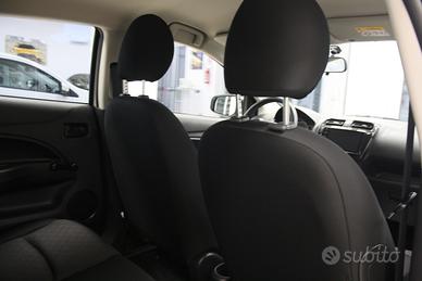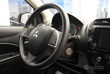 3 poggiatesta posteriori regolabili, piano copribagagli e vano di carico illuminato, sedili anteriori reclinabili, lato guida regolabile in altezza, alzavetro elettrici anteriori, climatizzatore manuale, volante regolabile in altezza, 4 altoparlanti, SDA (Smart-link display Audio - Smartphone mirroring), bluetooth con comandi al volante e controllo vocale, BAS (Brake Assist System)+ ESS (Emergency Stop signal System), MASC / MATC (Mitsubishi active stability / Traction control), airbag anteriori laterali e airbag a tendina, airbag frontali, attacchi isofix, sensori pioggia, chiusura centralizzata con telecomando, cerchi in acciaio da 14" con copricerchi, tyre repair kit.