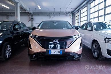 Airbag a tendina - Airbag a tendina posteriore e farside (fr) - Airbag guidatore - Airbag passeggero laterale - Allarme auto sonoro - Android Auto - Antenna Shark - Apertura bagagliaio hands-free - Avviso angolo cieco - Bluetooth con streaming audio - Caricabatterie di bordo da 7,4 kW - Caricabatterie per telefono wireless - Cavo di ricarica EVSE Modo 2 - 10A - Cavo di ricarica Modo 3 - 32A - Cerchi in lega da 19" con copertura aerodinamica - Climatizzatore automatico bi-zona e prese d'aria posteriori - Controllo automatico dei fari abbaglianti - Controllo vocale Nissan - Fari a LED con accensione e spegnimento automatico - Fari fendinebbia anteriori e posteriori LED - Finestrini con comando one-touch - Freno di stazionamento elettrico con funzione Auto Hold - Illuminazione Andon (vano piedi + porte anteriori) - Intelligent Around View Monitor a 360° - Intelligent Blind Spot Intervention - Intelligent Cruise Control - Intelligent Driver Alertness - Intelligent Emergency Braking anteriore con riconoscimento pedoni, ciclisti e assistenza agli incroci - Intelligent Forward Collision Warning - Intelligent Lane Intervention - Intelligent key - Lane Keep Assist - Luci Posteriori LED - Luci diurne LED con dispositivo "Follow Me Home" - Modanature finestrini cromate satinate - Nissan connect con display touchscreen da 12,3" e sistema infotainment - Parabrezza anteriore riscaldato - Portaoggetti centrale - Porte USB posteriori e anteriori solo per la ricarica (Tipo-A e Tipo-C) - Presa anteriore da 12V - Pro pilot con navi-link - Purificatore d'aria agli ioni di plasma - Quadro strumenti Full TFT da 12,3" - Radio DAB con 6 Altoparlanti - Rear Emergency Break and cross traffic alert - Sedili anteriori riscaldabili - Sedili conducente e passeggero a 6 vie regolabile elettronicamente - Sedili in PVC con parti in tessuto nero - Sedili posteriori abbattibili 60/40