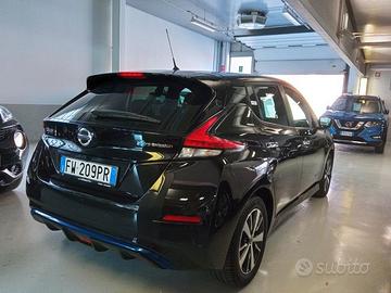 ABS - Airbag a tendina - Airbag laterali - Airbag lato guida - Airbag passeggero - Alzacristalli anteriori e posteriori elettrici (lato guida con funzione "one touch") - Attacchi ISOFIX - Attivazione climatizzatore da remoto - Bracciolo guidatore - Calotte specchietti retrovisori in tinta - Carica batteria 6,6 kW - Cerchi in lega 17'' 215/50R17 - Climatizzatore automatico con pompa di calore - Computer di bordo con indicatori di consumo energetico medio e istantaneo - Display HD a colori da 7'' integrato nel quadro strumenti e tachimetro analogico - EBD - ESP - Fari Fendinebbia Anteriori - Fari a LED autolivellanti - Fari automatici Intelligenti - Fari automatici crepuscolari e dispositivo "Follow me home" - Freno di stazionamento elettrico - Intelligent Cruise Control - Limitatore di velocità con comandi al volante - Maniglie Portiere Cromate - Modalità di guida ECO - Montante posteriore nero lucido - Nissan Intelligent Key con pulsante di avviamento - NissanConnectEV: navigatore satellitare con schermo touch screen da 7" con integrazione smartphone (Apple CarPlay e Android Auto) - ProPILOT - Radio DAB con lettore MP3, connettore AUX, Bluetooth, USB, comandi al volante e 6 altoparlanti - Retrocamera per il parcheggio - Riscaldamento e condizionamento automatico con filtro antipolline - Ruotino di scorta + Kit di montaggio - Sedile anteriori reclinabili e regolabili longitudinalmente - Sedili in eco-tessuto nero - Sensori Di Parcheggio Anteriori E Posteriori - Sistema Di Ricarica Rapida - Sistema Intelligente Attenzione Guidatore - Sistema Intelligente attivo di copertura angolo cieco - Sistema acustico per sicurezza pedoni - Sistema di avviso e prevenzione cambio corsia involontario Intelligente - Sistema di frenata di emergenza Intelligente con riconoscimento pedoni - Sistema di frenata rigenerativa - Sistema di monitoraggio della pressione
