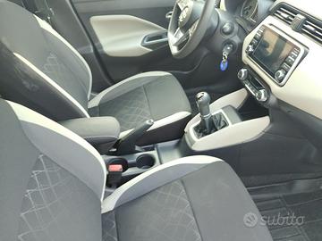 Climatizzatore automatico, Luce ambientale a LED nel vano consolle anteriore, Illuminazione del bagagliaio, Sedile del guidatore regolabile in altezza, Volante rivestito in pelle, Volante regolabile in altezza e profondità, Finiture cromate pomello del cambio, Sedili posteriori abbattibili 60/40, Pomello del cambio e leva del freno a mano rivestiti in pelle, Intelligent Ride Control, Intelligent Trace Control, Luci di emergenza automatiche, Sensore di temperatura esterna, Nissan Intelligent Key con pulsante di avviamento, Sistema audio BOSE Personal con 6 altoparlanti, Display di assistenza avanzata alla guida TFT da 5'', Computer di bordo, New NissanConnect con schermo touch da 7'' e 4 altoparlanti (mappe TomTom, Integrazione smartphone Apple Carplay e Android Auto, Bluetooth, Wi-fi, USB), Cerchi in lega da 16'' diamantati, Presa elettrica 12 V x1, Stop & Start, Maniglie cromate delle portiere, Maniglie anteriori in tinta, Specchietti in tinta con indicatori di direzione integrati, Specchietti regolabili elettricamente con indicatori di direzione integrati, Specchietti riscaldati, ripiegabili elettricamente con indicatori di direzione, Spoiler posteriore al tetto, Fari Fendinebbia Anteriori, Fari automatici Intelligenti, Luci diurne a LED, Interni in tessuto Absolute, Poggiatesta sedili posteriori x2, ABS,
