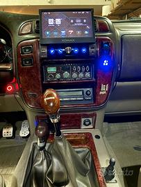 Manometri interni pressione turbo, temperatura acqua, pressione olio, CB Alan 48 modificato, radio con display 10" con subwoofer e 6 altoparlanti , interni in radica e sedili in pelle grigia, pulsantiera illuminata interna.