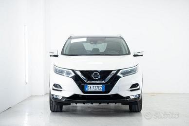 2 Airbag a tendina - 2 Airbag laterali - ABS - Airbag guida - Airbag passeggero - Alette parasole con specchietto di cortesia (guidatore e passeggero) - Antenna Shark - Attacchi Isofix (x2) sedili posteriori - Barre longitudinali al tetto - Bracciolo centrale anteriore con vano portaoggetti, porta USB e presa 12V - Bracciolo centrale posteriore con portabicchieri - Calotte specchietti retrovisori esterni in tinta - Cerchi in lega da 18'' - Chiusura centralizzata con sblocco selettivo - Chiusura di sicurezza per bambini (porte posteriori) - Cinture di sicurezza anteriori con pretensionatore - Climatizzatore automatico bi-zona - Computer di bordo con display a colori da 5" integrato nel quadro strumenti - Consolle centrale con doppio portabicchieri - Cruise Control e limitatore di velocità con comandi al volante - EBD - Fari a LED con sistema intelligente di inseguimento della traiettoria - Fari automatici Intelligenti - Fendinebbia anteriori - Finiture paraurti posteriore satinate - Finiture prese d'aria anteriori satinate - Freno di stazionamento elettrico - Illuminazione abitacolo diffusa - Immobilizer (antifurto Nissan Anti Theft System) - Indicatori di direzione integrati negli specchi retrovisori esterni - Indicatori di direzione integrati nella firma LED - Integrazione Smartphone e compatibilità Apple CarPlay e Android Auto, schermo touch screen da 7'' e comandi vocali - Kit di gonfiaggio IMS - Logo Hologram - Luci diurne a LED - Luci posteriori a LED 3D - Maniglie esterne porte in tinta - Navigatore satellitare con mappe TomTom, Premium Live Traffic, Aggiornamenti Over The Air (via smartphone) - Nissan Intelligent key e pulsante di avviamento - Paraurti in tinta anteriori e posteriori - Presa USB seconda fila di sedili - Profilo superficie laterale vetrata cromato - Radio DAB a 1 CD con lettore MP3, Bluetooth, USB, comandi al volante e 6 altoparlanti -