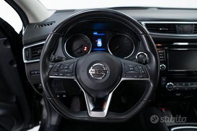 2 Airbag a tendina - 2 Airbag laterali - ABS - Airbag guida - Airbag passeggero - Alette parasole con specchietto di cortesia (guidatore e passeggero) - Antenna Shark - Attacchi Isofix (x2) sedili posteriori - Barre longitudinali al tetto - Bracciolo centrale anteriore con vano portaoggetti, porta USB e presa 12V - Bracciolo centrale posteriore con portabicchieri - Calotte specchietti retrovisori esterni in tinta - Cerchi in lega da 18'' - Chiusura centralizzata con sblocco selettivo - Chiusura di sicurezza per bambini (porte posteriori) - Cinture di sicurezza anteriori con pretensionatore - Climatizzatore automatico bi-zona - Computer di bordo con display a colori da 5" integrato nel quadro strumenti - Consolle centrale con doppio portabicchieri - Cruise Control e limitatore di velocità con comandi al volante - EBD - Fari a LED con sistema intelligente di inseguimento della traiettoria - Fari automatici Intelligenti - Fendinebbia anteriori - Finiture paraurti posteriore satinate - Finiture prese d'aria anteriori satinate - Freno di stazionamento elettrico - Illuminazione abitacolo diffusa - Immobilizer (antifurto Nissan Anti Theft System) - Indicatori di direzione integrati negli specchi retrovisori esterni - Indicatori di direzione integrati nella firma LED - Integrazione Smartphone e compatibilità Apple CarPlay e Android Auto, schermo touch screen da 7'' e comandi vocali - Kit di gonfiaggio IMS - Logo Hologram - Luci diurne a LED - Luci posteriori a LED 3D - Maniglie esterne porte in tinta - Navigatore satellitare con mappe TomTom, Premium Live Traffic, Aggiornamenti Over The Air (via smartphone) - Nissan Intelligent key e pulsante di avviamento - Paraurti in tinta anteriori e posteriori - Presa USB seconda fila di sedili - Profilo superficie laterale vetrata cromato - Radio DAB a 1 CD con lettore MP3, Bluetooth, USB, comandi al volante e 6