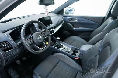 1 Airbag tra sedili anteriori - 2 Airbag Frontali - 2 Airbag anteriori laterali - 2 Airbags a tendina - 4 Altoparlanti - Alette parasole con specchietto di cortesia (guidatore e passeggero) - Alzacristalli elettrici 1 touch - Antenna Shark - Antifurto Perimetrale - Apertura bagagliaio hands-free - Around View Monitor con rilevamento oggetti in movimento - Blind Spot Intervention - Blind Spot Warning - Bluetooth (telefono e audio) - Bracciolo posteriore con portabicchieri - Caricabatterie Wireless - Cassetto Portaoggetti con luce di cortesia - Cerchi in lega da 19" Edge - Cielo abitacolo nero - Cinture di Sicurezza con pretensionatori Anteriori e Posteriori - Climatizzatore dual zone - Drive Assist - Drive modes (Selettore modalità di guida) - Driver Attention Alert - E-Call Emergency Call - Fari Automatici Intelligenti (Sensore Crepuscolare) - Fari LED con tecnologia Adaptive Driving Beam Assist (Fari abbaglianti adattativi) - Fissaggi Isofix (Sedili posteriori) - Freno di stazionamento elettronico - Head-up display da 10,8" - Hill start assist & auto hold - Illuminazione ambientale (Console centrale e Portiere) - Illuminazione bagagliaio - Indicatori di direzione anteriori e posteriori LED - Integrazione Smartphone e compatibilità Apple CarPlay e Android Auto - Intelligent Cruise Control - Intelligent Forward Collision Warning - Intelligent Front Emergency Braking with Pedestrian, Cyclist & Junction assist - Intelligent Key (Apertura porte e Avviamento motore) - Lane Departure Prevention - Lane Departure Warning - Lane side support - Luci diurne Led - Luci posteriori LED (frenata e luci posizione) - Navigatore satellitare NissanConnect con schermo da 9" mappe TomTom, Premium Live Traffic, Aggiornamenti Over The Air e NissanConnect Services - Paraurti posteriore con inserti silver - Porta bicchieri - Porte USB posteriori - Presa USB Ant. - Prese 12V (Abitacolo