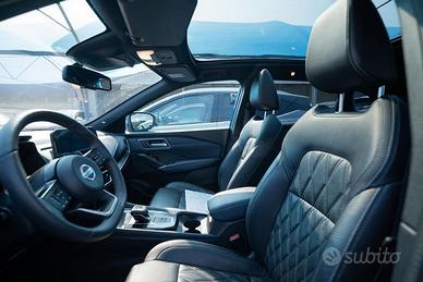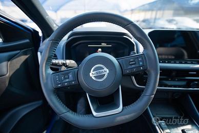 1 Airbag tra sedili anteriori - 2 Airbag Frontali - 2 Airbag anteriori laterali - 2 Airbags a tendina - Advanced Intelligent Key (Memoria Sedili e Retrovisori) - Alette parasole con specchietto di cortesia (guidatore e passeggero) - Alzacristalli elettrici 1 touch - Antenna Shark - Antifurto Perimetrale - Apertura bagagliaio hands-free - Around View Monitor con rilevamento oggetti in movimento - Avviso Cinture di Sicurezza Posteriori - Barre longitudinali al tetto - Blind Spot Intervention - Blind Spot Warning - Bluetooth (telefono e audio) - Bracciolo posteriore con portabicchieri - Caricabatterie Wireless - Cassetto Portaoggetti con luce di cortesia - Cerchi in lega da 20" Swirl - Cielo abitacolo nero - Climatizzatore dual zone - Comandi cambio al volante - Drive modes (Selettore modalità di guida) - Driver Attention Alert - E-Call Emergency Call - Fari Automatici Intelligenti (Sensore Crepuscolare) - Fari LED con tecnologia Adaptive Driving Beam Assist (Fari abbaglianti adattativi) - Fendinebbia LED - Fissaggi Isofix (Sedili posteriori) - Freno di stazionamento elettronico - Head-up display da 10,8" - Hill start assist & auto hold - Illuminazione ambientale (Console centrale e Portiere) - Illuminazione bagagliaio - Indicatori di direzione anteriori e posteriori LED - Integrazione Smartphone e compatibilità Apple CarPlay e Android Auto - Intelligent Cruise Control - Intelligent Forward Collision Warning - Intelligent Front Emergency Braking with Pedestrian, Cyclist & Junction assist - Lane Departure Prevention - Lane Departure Warning - Lane side support - Luci diurne Led - Luci posteriori LED (frenata e luci posizione) - Navigatore satellitare NissanConnect con schermo da 9" mappe TomTom, Premium Live Traffic, Aggiornamenti Over The Air e NissanConnect Services - Parabrezza, sedili anteriori e volante riscaldabili - Paraurti posteriore con inserti silver -