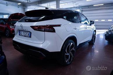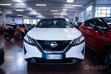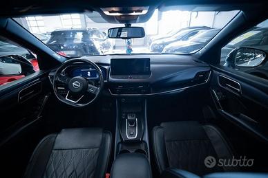 1 Airbag tra sedili anteriori - 2 Airbag Frontali - 2 Airbag anteriori laterali - 2 Airbags a tendina - Advanced Intelligent Key (Memoria Sedile guidatore e Retrovisori) - Alette parasole con specchietto di cortesia (guidatore e passeggero) - Alzacristalli elettrici 1 touch - Antenna Shark - Antifurto Perimetrale - Apertura bagagliaio hands-free - Around View Monitor con rilevamento oggetti in movimento - Barre longitudinali al tetto - Blind Spot Intervention - Blind Spot Warning - Bluetooth (telefono e audio) - Bracciolo posteriore con portabicchieri - Caricabatterie Wireless - Cassetto Portaoggetti con luce di cortesia - Cerchi in lega da 20" Swirl - Cielo abitacolo nero - Cinture di Sicurezza con pretensionatori Anteriori e Posteriori - Climatizzatore dual zone - Comandi cambio al volante - Drive modes (Selettore modalità di guida) - Driver Attention Alert - E-Call Emergency Call - Fari Automatici Intelligenti (Sensore Crepuscolare) - Fari LED con tecnologia Adaptive Driving Beam Assist (Fari abbaglianti adattativi) - Fendinebbia LED - Fissaggi Isofix (Sedili posteriori) - Freno di stazionamento elettronico - Head-up display da 10,8" - Hill start assist & auto hold - Illuminazione ambientale (Console centrale e Portiere) - Illuminazione bagagliaio - Indicatori di direzione anteriori e posteriori LED - Integrazione Smartphone e compatibilità Apple CarPlay e Android Auto - Intelligent Cruise Control - Intelligent Forward Collision Warning - Intelligent Front Emergency Braking with Pedestrian, Cyclist & Junction assist - Lane Departure Prevention - Lane Departure Warning - Lane side support - Luci diurne Led - Luci posteriori LED (frenata e luci posizione) - Navigatore satellitare NissanConnect con schermo da 12,3" mappe TomTom, Premium Live Traffic, Aggiornamenti Over The Air e NissanConnect Services - Parabrezza, sedili anteriori e volante riscaldabili -