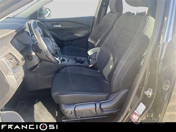 Altre opzioni: 4 Altoparlanti;4 Maniglie ripiegabili + 2 ganci appendiabiti (posteriori);Alette parasole con specchietto di cortesia (guidatore e passeggero);Antenna Shark;Around View Monitor con rilevamento oggetti in movimento;Bagagliaio modulare;Blind Spot Intervention;Blind Spot Warning;Cassetto Portaoggetti con luce di cortesia;Cerchi in lega da 18" Akari;Cinture di Sicurezza con pretensionatori Anteriori e Posteriori;David Boitel;Drive modes (Selettore modalità di guida);Driver Attention Alert;E-Call Emergency Call;Fari Automatici Intelligenti (Sensore Crepuscolare);Freno di stazionamento elettronico;Hill start assist & auto hold;Illuminazione ambientale console centrale;Illuminazione bagagliaio;Integrazione Smartphone e compatibilità Apple CarPlay e Android Auto;Intelligent Forward Collision Warning;Intelligent Front Emergency Braking with Pedestrian, Cyclist & Junction assist;Intelligent Key (Apertura porte e Avviamento motore);Interruttore avviamento motore;Lane Departure Prevention;Lane Departure Warning;Lane side support;Luci diurne Led;Luci posteriori LED (frenata e luci posizione);Navigatore satellitare NissanConnect con schermo da 12,3" mappe TomTom, Premium Live Traffic, Aggior;Paraurti posteriori con inserti grafite;Poggia ginocchio Soft touch;Porta bicchieri;Prese 12V (Abitacolo e Vano Bagagli);Quadro strumenti Full TFT da 12,3";Rear Automatic Braking;Rear Cross Traffic Alert;Retrocamera posteriore;Retrovisore interno auto-oscurante;Rivestimento Sedili In Tessuto;Sedile