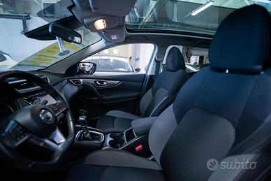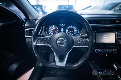 ABS - Airbag a tendina - Airbag guida - Airbag laterali - Airbag passeggero - Alette parasole con specchietto di cortesia (guidatore e passeggero) / illuminato - Antenna Shark - Attacchi Isofix (x2) sedili posteriori - Barre longitudinali al tetto - Bracciolo centrale anteriore con vano portaoggetti (6.1 litri), porta USB e presa 12V - Bracciolo centrale posteriore con portabicchieri - Calotte specchietti retrovisori esterni in tinta - Cambio manuale 6 rapporti - Cerchi in lega da 18'' - Chiusura centralizzata con sblocco selettivo - Chiusura di sicurezza per bambini (porte posteriori) - Cinture di sicurezza anteriori con pretensionatore - Climatizzatore automatico bi-zona - Computer di bordo - Consolle centrale con doppio portabicchieri - Cruise Control - Display a colori da 5" integrato nel quadro strumenti - EBD - Fari automatici Intelligenti - Fendinebbia anteriori - Finiture paraurti posteriore satinate - Freno di stazionamento elettrico - Illuminazione abitacolo diffusa - Immobilizer (antifurto Nissan Anti Theft System) - Indicatori di direzione integrati negli specchi retrovisori esterni - Kit di gonfiaggio IMS - Limitatore di velocità con comandi al volante - Logo Hologram - Luci diurne a LED - Luci posteriori a LED 3D - Maniglie esterne porte in tinta - Nissan Intelligent key e pulsante di avviamento - NissanConnect: navigatore satellitare con schermo touch screen da 7'', integrazione con il display da 5" nel quadro strumenti - Paraurti in tinta anteriori e posteriori - Profilo superficie laterale vetrata cromato - Radio DAB a 1 CD con lettore MP3, Bluetooth, USB, comandi al volante e 6 altoparlanti - Retrocamera posteriore - SAFETY PACK - Schienale 2a fila 60/40, ribaltabile - Sedile guida regolabile in altezza - Sedile passeggero anteriore regolabile in altezza - Sedili Monoform in tessuto - Sensore crepuscolare - Sensore pioggia - Sistema