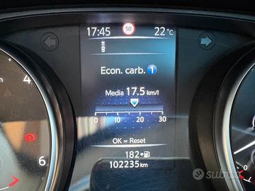 Auto in ottime condizioni, km certificati, guidabile da neopatentati, tetto panoramico, cronologia tagliandi nissan I nostri servizi: 12 mesi di garanzia Tagliando pre consegna Possibilità di finanziamento Carrozzeria Suv e Fuoristrada Porte 5 Posti 5 Bagagliaio 430 - 1.533 dm3 Capacità serbatoio 55 litri Massa in ordine di marcia 1.385 kg Massa rimorchiabile max 1.350 kg Lunghezza 439 cm Larghezza 181 cm Altezza 159 cm Passo 265 cm Motore Motore 4 cilindri in linea Cilindrata 1.461 cc Alimentazione Diesel Potenza max/regime 81 kW (110 CV) 4,000 giri/min Coppia massima 260 Nm Trazione Anteriore Cambio Manuale Marce 6 Prestazioni Velocità max 182 km/h Accelerazione 0-100km/h 11,9 secondi Emissioni CO2 99 g/km Omologazione antinquin. Euro 6 Accessori di serie ABS + EBD di serie Alette parasole con specchietto di cortesia (guida e passegg.) di serie Antenna Shark di serie Appoggiatesta posteriori di serie Attacchi ISOFIX (x2) sedili posteriori di serie Bagagliaio con doppio fondo modulare di serie Barre longitudinali al tetto di serie Bracciolo centrale anteriore con vano portaoggetti (6.1 litri) porta USB e presa 12V di serie Bracciolo centrale posteriore con portabicchieri di serie Calotte specchietti retrovisori esterni in tinta di serie Cambio manuale a 6 marce di serie Cerchi in lega da 18" di serie Chiusura centralizzata con sblocco selettivo di serie Chiusura di sicurezza per bambini (portiere posteriori) di serie Cinture di sicurezza anteriori con pretensionatore di serie Climatizzatore automatico bi-zona di serie Computer di bordo di serie Consolle centrale con doppio portabicchieri di serie Controllo elettr. della trazione (TCS) di serie Correttore assetto fari di serie Cruise control e limitatore di velocità con comandi al volante di serie Display a colori da 5" integrato nel quadro strumenti di serie Fari automatici intelligenti di serie Fendinebbia anteriori di serie Filtro anti-particolato di serie