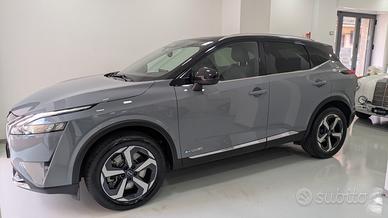 Nissan Qashqai E-Power N-Connecta 190cv 2023 allestimento “Qashqai e-Power N-Connecta”, alimentazione IBRIDA ELETTRICA / BENZINA, cambio automatico, bi-colore Ceramic Grey con tetto e montanti Nero Metallizzato, unico proprietario che l’ha acquistata nuova il 29.03.2023 presso la Conc. Uff. NISSAN di Taranto “FIVE MOTORS SRL” ove sono state eseguite anche le due manutenzioni annuali con ultima effettuata il 15.11.2025 a 60.278 km, mentre la prossima dovrà essere effettuata a 75.200 km e/o a Novembre 2026. Inoltre la vettura ha la “GARANZIA UFFICIALE NISSAN” attiva sino al 28.03.2027 e/o 100.000 km, con possibilità di estensione sino al decimo anno dall’immatricolazione (anno 2033) e/o 200.000 km di percorrenza, effettuando i tagliandi regolarmente in Nissan. Già installato l’antifurto meccanico BLOCKSHAFT. Vettura pari al nuovo, molto economica nei consumi grazie al sistema ibrido, con all'attivo 65.647 km, motorizzata con un motore termico da 1.5 litri (116 kw) che funziona esclusivamente come generatore, mentre il motore elettrico fornisce trazione alle ruote anteriori, quest’ultimo ha una potenza di 190 CV e una coppia di 330 Nm, offrendo prestazioni competitive, classe ambientale Euro 6B, consumi di circa 20km/l. La tecnologia e-Power consente un'esperienza di guida simile a quella di un'auto elettrica, mantenendo l'autonomia di un veicolo tradizionale, ottime prestazioni, cambio automatico fluido e preciso. Versione N-Connecta (uno dei top di gamma) con: Airbag tra sedili anteriori / anteriori laterali / Frontali / a tendina, 4 Altoparlanti, Alzacristalli elettrici 1 touch, Antenna Shark, Antifurto Perimetrale, Around View Monitor con rilevamento oggetti in movimento e telecamere 360 gradi, Bagagliaio modulare, Blind Spot Intervention e Warning (sensore angolo cieco), Bluetooth (telefono e audio), Cerchi in lega da 18" Diamond, Climatizzatore dual zone, Drive modes (Selettore modalità di guida), Driver Attention Alert, E-Call Chiamata d’Emergenza, Fari Automat