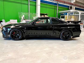 Nissan Skyline R34 anno 1999 km 35813. Motore rb26dett stroker 2.8 tomei forgiato su single turbo ed elettronica apex fc. Gomme nuove, frizione nuova, cinghia distribuzione e tagliando appena eseguiti. Riverniciata del suo colore originale nero perla nissan. Fari xenon di serie, manuale di serie. Auto con svariate modifiche e migliorie. Unici difetti da sostituire un paraolio sulla scatola sterzo che ho già e riverniciare i coperchi delle punterie. Valuto permute con altre auto (cayman s, 996 turbo, r8, 350z, 300zx e simili).