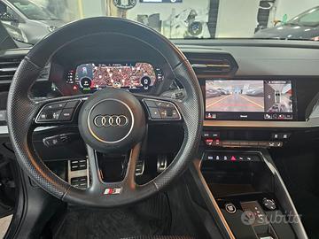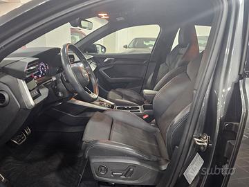 NUOVA AUDI A3 SPORTBACK S-LINE 35 TDI 150CV S-TRONIC IDENTITY BLACK. Vettura ritirata direttamente dalla casa madre con garanzia ufficiale AUDI. ACCESSORI: Cerchi in lega leggera da 18 pollici nero lucido, Sedili Sportivi S-line in pelle parziale, Indicatore pressione pneumatici, Gruppi ottici posteriori a LED con indicatori di direzione integrati, Luci diurne, Luci fendinebbia posteriori, Proiettori a LED, Proiettori a LED Audi Matrix con gruppi ottici posteriori a LED, Regolazione automatica dinamica della profondità dei fari, Sensore luci/pioggia, Spoiler posteriore, Parabrezza con isolamento acustico e termico, Attacchi Isofix con Top Tether per i sedili esterni della panca posteriore, Supporto lombare, Panca posteriore sdoppiata ripiegabile e scorrevole, Poggiabraccia anteriore centrale apribile, Tappetini anteriori e posteriori in velluto, Lamine decorative laterali total black, volante a tre razze sportivo a fondo piatto in pelle totale e comandi multifunzionali, Pacchetto portaoggetti e vano bagagli, Climatizzatore automatico trizona climatronic, Immobilizer, Portellone vano bagagli ad apertura e chiusura elettrica anche a distanza con sistema Audi Key, Presa di corrente a 12V nella consolle centrale anteriore, Specchietti retrovisori esterni, regolabili, riscaldabili e elettrici, Specchietto retrovisivo interno schermabile automaticamente, Chiave comfort con apertura a distanza, Audi Sound system, Audi connect navigation & infotainment plus, Audi connect Safety & Service con vehicle scheduling (scheda guida veicolo con elenco prestazioni), Audi virtual cockpit plus da 10,25’, Comando vocale per telefonia e media, Interfaccia Bluetooth, Modulo di navigazione con mappa europea aggiornata, Ricezione radio digitale (DAB), Sistema di navigazione MMI plus con MMI touch, Adaptive cruise assist (ACC), Assistente alla partenza in salita, Freno di stazionamento elettromeccanico con assistenza alla partenza, Lane departure warning e Lane change warning (avviso d