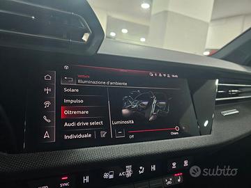 NUOVA AUDI A3 SPORTBACK SPB S-LINE 35TDI 150CV S-TRONIC BLACK -LUCI- SONOS- SEDILI ELETTRICI-RISCALDATI-MASSAGGIANTI. Vettura ritirata direttamente dalla casa madre con garanzia ufficiale AUDI. ACCESSORI: Impianto audio SONOS, Pack luci, Cerchi in lega leggera da 18 pollici nero lucido, Sedili Sportivi in tessuto tecnico specifico traspirante e ventilato, Indicatore pressione pneumatici, Gruppi ottici posteriori a LED con indicatori di direzione integrati, Luci diurne, Luci fendinebbia posteriori, Proiettori a LED, Proiettori a LED Audi Matrix con gruppi ottici posteriori a LED, Regolazione automatica dinamica della profondità dei fari, Sensore luci/pioggia, Spoiler posteriore, Parabrezza con isolamento acustico e termico, Attacchi Isofix con Top Tether per i sedili esterni della panca posteriore, Supporto lombare, Panca posteriore sdoppiata ripiegabile e scorrevole, Poggiabraccia anteriore centrale apribile, Tappetini anteriori e posteriori in velluto, Lamine decorative laterali total black, volante a tre razze sportivo a fondo piatto in pelle totale e comandi multifunzionali, Pacchetto portaoggetti e vano bagagli, Climatizzatore automatico trizona climatronic, Immobilizer, Portellone vano bagagli ad apertura e chiusura elettrica anche a distanza con sistema Audi Key, Presa di corrente a 12V nella consolle centrale anteriore, Specchietti retrovisori esterni, regolabili, riscaldabili e elettrici, Specchietto retrovisivo interno schermabile automaticamente, Chiave comfort con apertura a distanza, Audi Sound system, Audi connect navigation & infotainment plus, Audi connect Safety & Service con vehicle scheduling (scheda guida veicolo con elenco prestazioni), Audi virtual cockpit plus da 10,25’, Comando vocale per telefonia e media, Interfaccia Bluetooth, Modulo di navigazione con mappa europea aggiornata, Ricezione radio digitale (DAB), Sistema di navigazione MMI plus con MMI touch, Adaptive cruise assist (ACC), Assistente alla partenza in salita, Freno di stazi