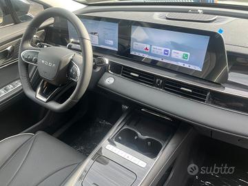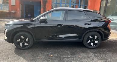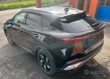 Omoda 5 1.6 TGDI 147 Cv Premium nuova da immatricolare colore Esterno Carbon Crystal BLACK interni similpelle con sedili sportivi con poggiatesta integrato con regolazione elettriche, riscaldati e ventilati ... allestimento Top tutto di serie(compreso vernice metallizzata) Fari Full Led anteriori e posteriori indicatori di direzione con effetto swipe, quadro strumenti digitale da 12,3"e Display centrale da 12,3" Hd con Apple CarPlay e Androide Auto e ricarica Wireless, ambiente luci interno anteriore e posteriore tettuccio apribile, motore benzina turbo iniezione diretta con 147Cv cambio automatico doppia frizione 7 rapporti con modalità di guida Eco/Sport/Normal.